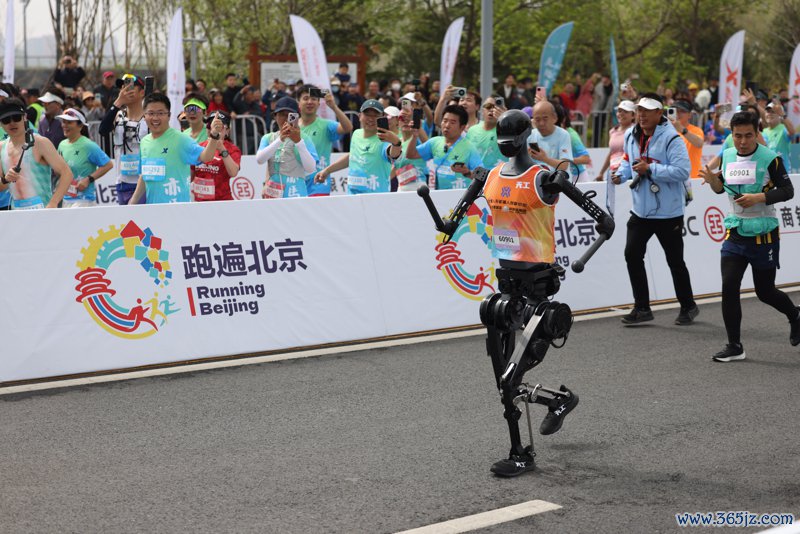 天工队选手天工Ultra(前)在2025北京亦庄半程马拉松暨东谈主形机器东谈主半程马拉松比赛中冲向至极(2025年4月19日摄)。\n (配本社同题翰墨稿)\n 新华社记者 方欣 摄