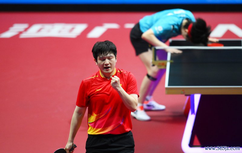 2025年11月20日,上海队选手樊振东庆祝男单比赛到手。他3比1征服北京队选手王楚钦。当日,在澳门举行的第十五届寰宇指点会乒乓球须眉团体金牌赛中,北京队对阵上海队。\n 新华社发(张金加 摄)